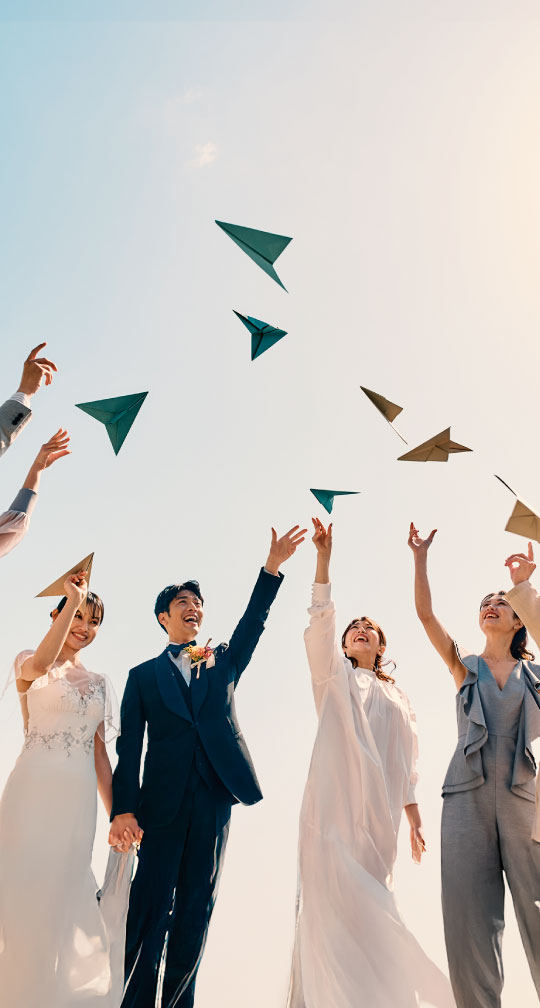 「天空の教会」での挙式後、披露宴開始までの時間をお過ごしいただくのは「ウェルカムパーク」。ゲストとの懐かしい写真を飾ったり、思い出のBGMをセレクトしたりと、空間を自由にアレンジして、おふたりがウェディングに込めた気持ちやテーマを表現することができます。