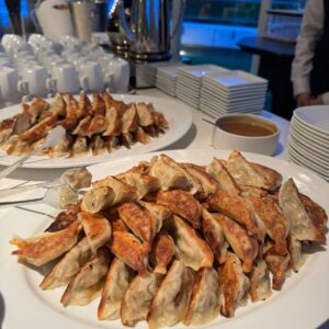 おふたりの好きな餃子をたくさん並べて、神戸ならでは味噌だれを上からドリップする