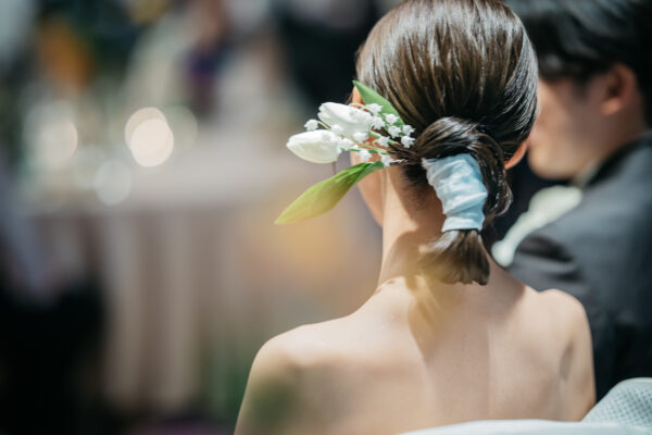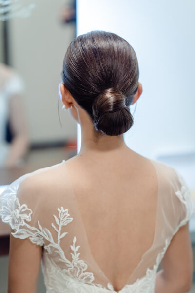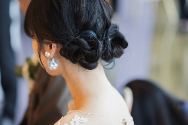 花嫁様のヘアセットとしても定番なお団子・シニヨンスタイル。