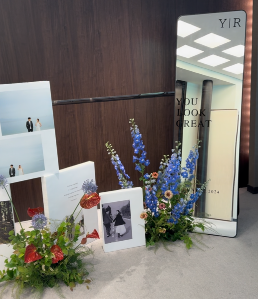- ガラス用マーカーやペンを使って、ミラーに「Welcome」や「○○ & ○○ Wedding」などのメッセージを描きます!