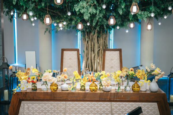 テーマカラーやパーティーの雰囲気をお伺いして、コーディネートもおふたりらしいものを