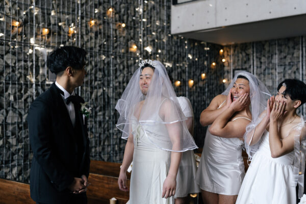 振り返った新郎様は、目の前に広がるまさかの光景にびっくりしすぎて