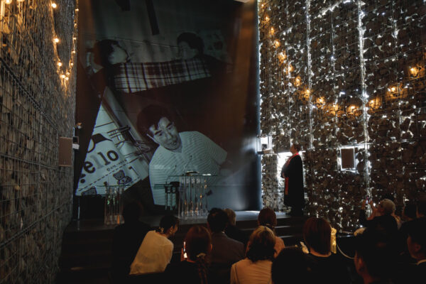 チャペルの柔らかな光の中で流れるその映像は、まるで時間がゆっくりと巻き戻るような
