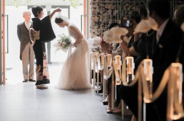 先程ご紹介した、扉が開いた瞬間が「花嫁の誕生」を表すことを知っていると、扉前でのお母様からのベールダウンのセレモニーはとっても感動しますよね♡