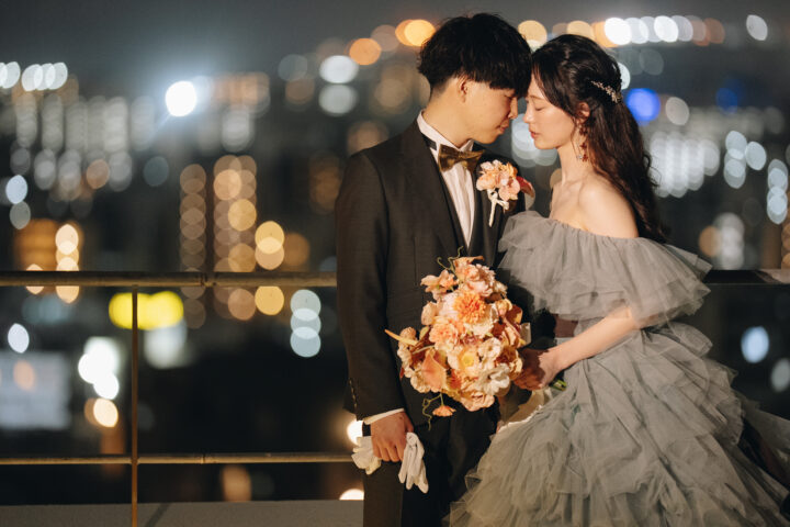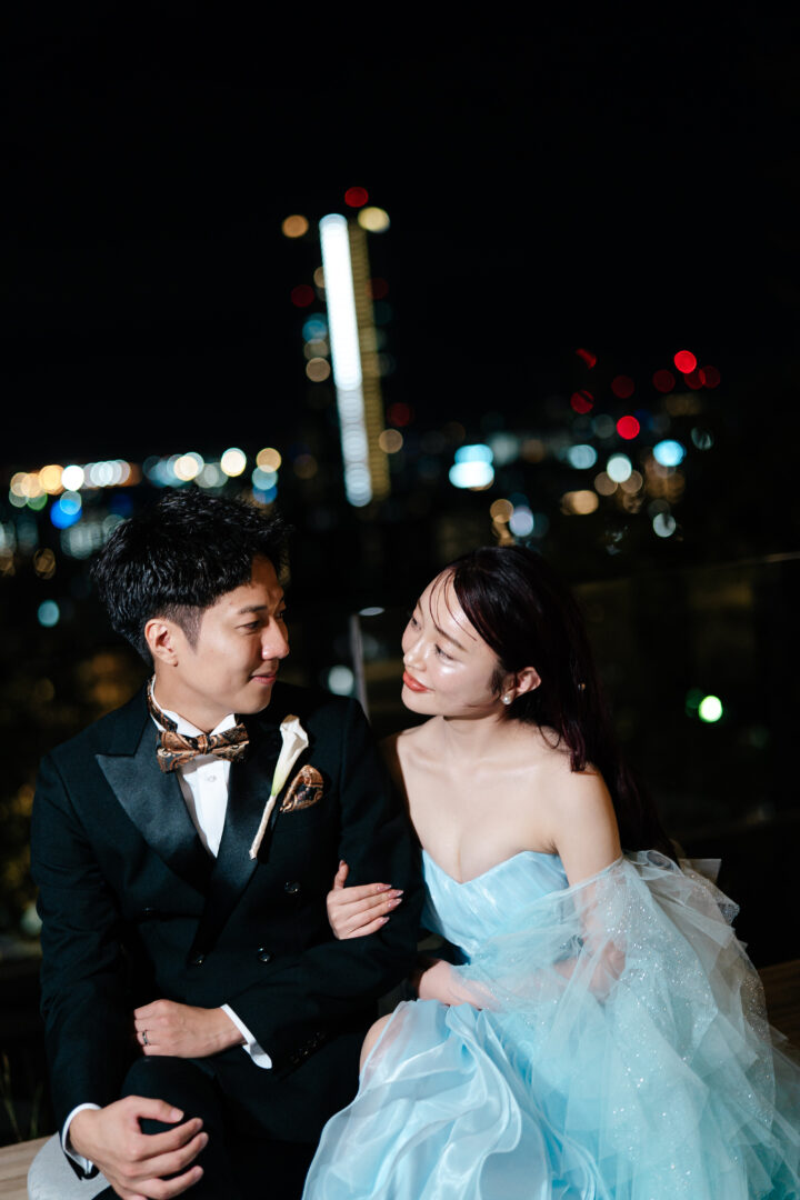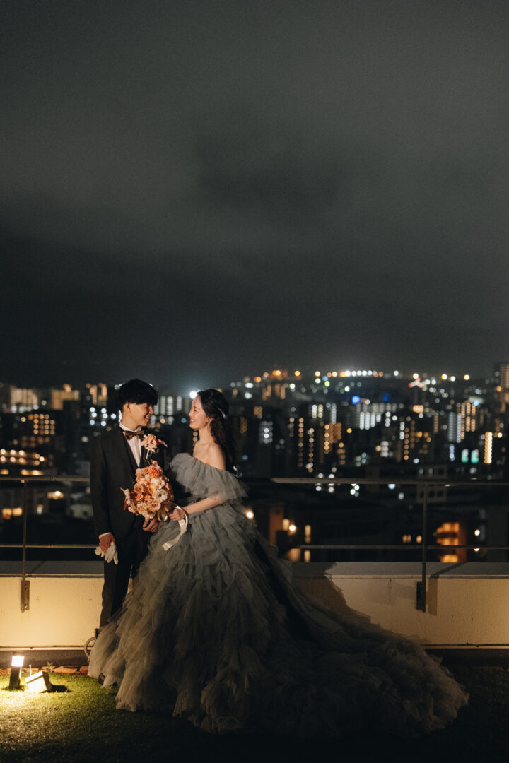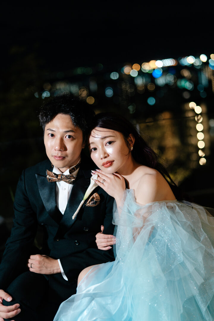 ドレスのチュールや、タキシードの艶感も夜の照明によってより引き立ちます!