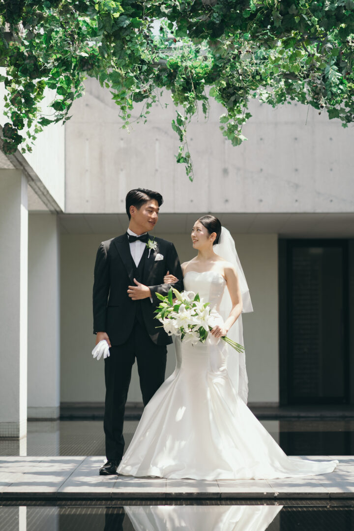 ブラックタキシードには、真っ白なウエディングドレスが相性抜群です♡