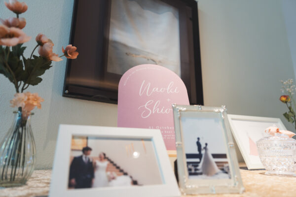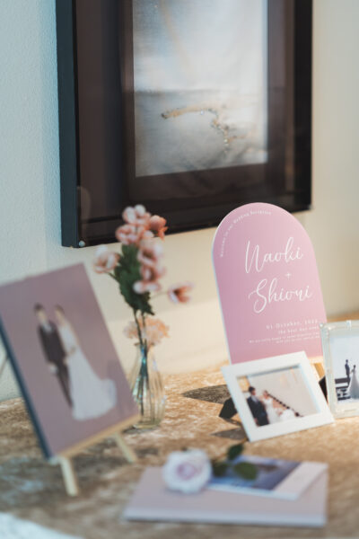💗お二人のお名前が入ったウェルカムボードを置いて