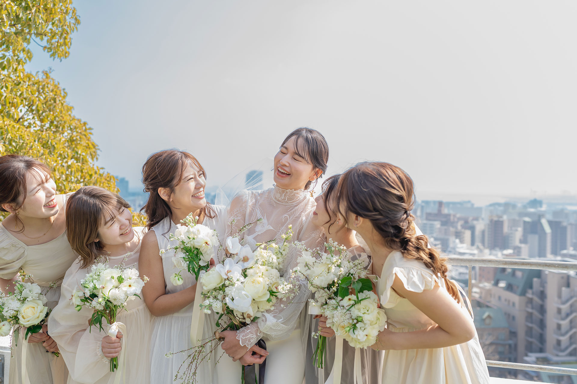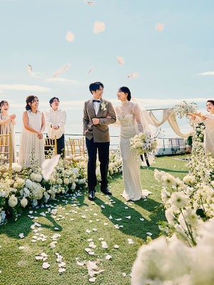 お母様から新婦様への最後の身支度となるベールダウン、ゲストからの温かな祝福に包まれるフラワーシャワーなど、セレモニー前後の演出も天空からの贈り物。神戸の夜景と星空に包まれるナイト挙式にもぜひご注目ください。