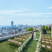 アレンジ自在の広さとプライベート感が魅力の屋上庭園。神戸の眺望とどこまでも続く青空、心地よい風を感じながら、ゲストと自然体でゆっくりお過ごしください。