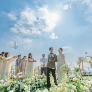 ガーデン挙式後は、大空へ願いを込めたバルーンセレモニーや、ゲストの皆様との乾杯を楽しんで。海外ウェディングを思わせる素敵な写真がたくさん残せるはず。