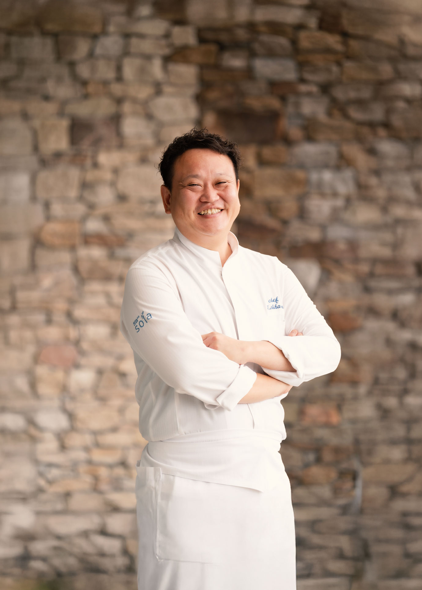 半世紀以上にわたって神戸・北野で美食家たちをもてなしてきた老舗レストランから、伝統的なフレンチの技術を継承。それらを大切に守りつつ、幅広い年代の方が集うウェディングの場にふさわしい「神戸キュイジーヌ」を生み出しました。淡路や瀬戸内で水揚げされた新鮮な魚介をはじめ、地元産の食材も積極的に取り入れ、その日、SOLAでしか味わえないスペシャルなコース料理をご提供します。