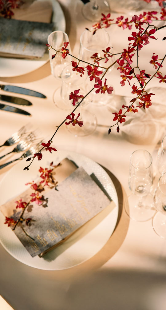幅広い年齢層の方が集まるウェディングにおいては「親しみやすさ」も大切。そのような考えから、伝統的なフレンチの技法に和の要素も取り入れた、唯一無二の祝宴料理をご提供します。