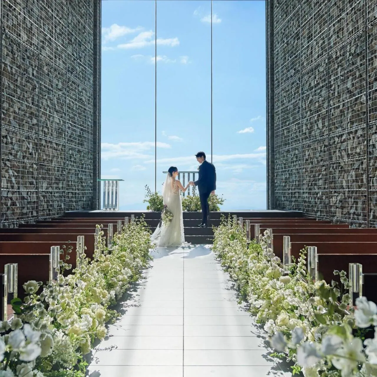 【当日さながらの感動チャペル体験】まるで空に浮かんでいるかのようなドラマティックな天空(そら)の教会で挙式体験!時間とともに表情を変えていく空をご堪能ください♪
