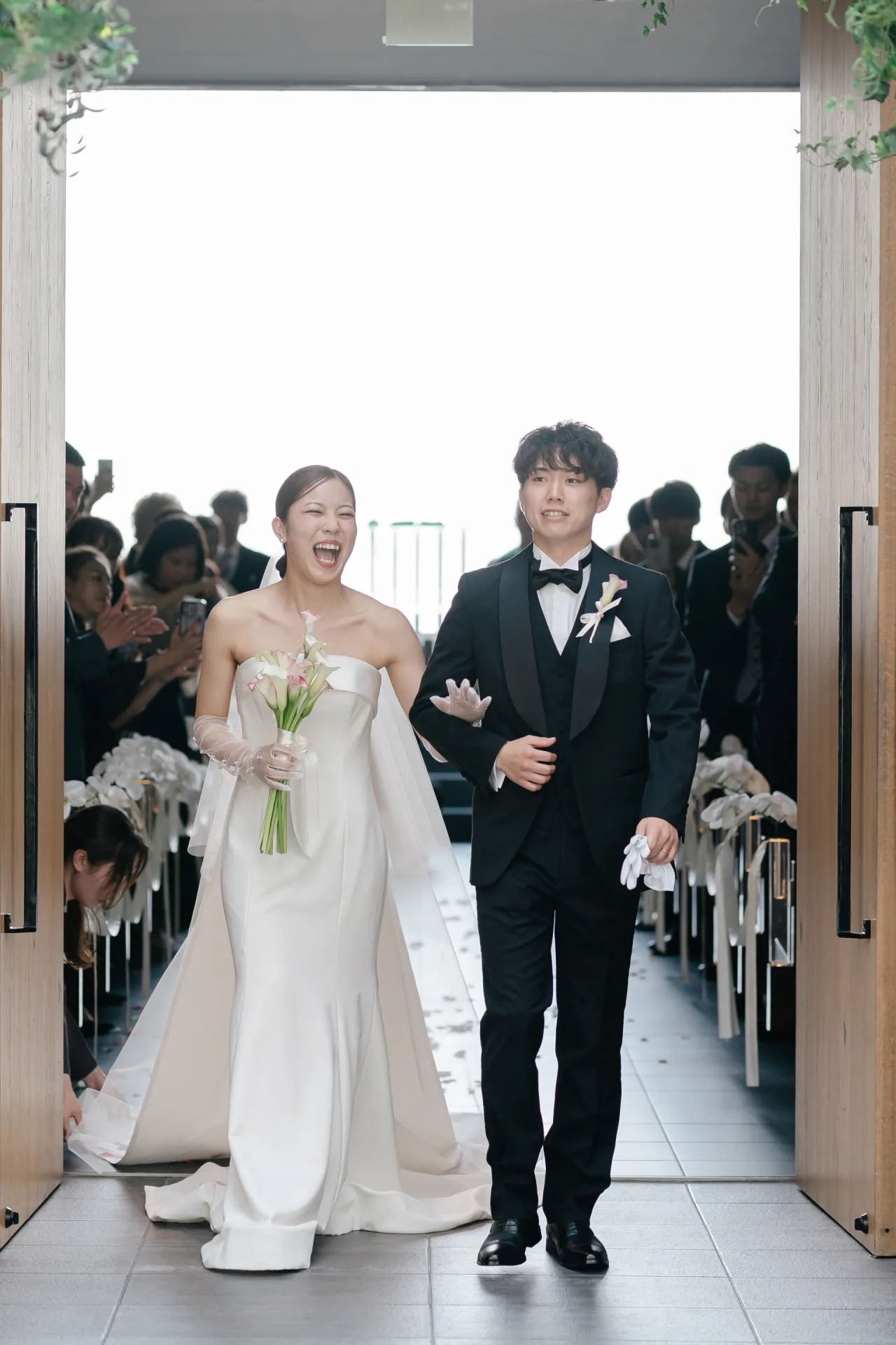 おふたりとも緊張で少し硬い表情でしたがバージンロードを歩み出した瞬間
