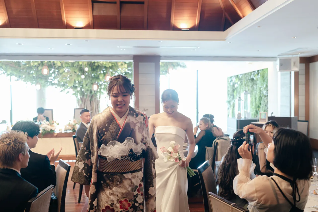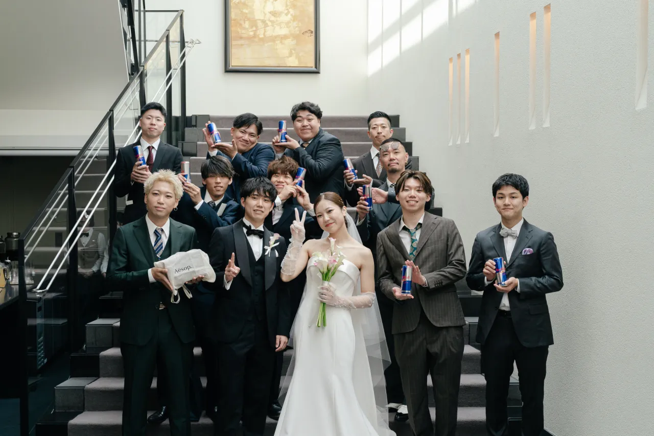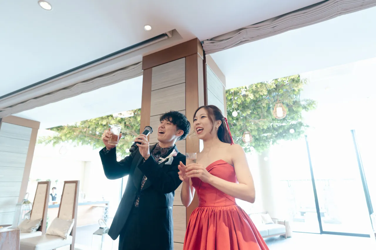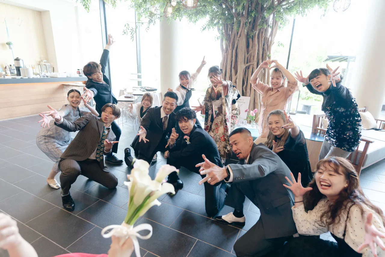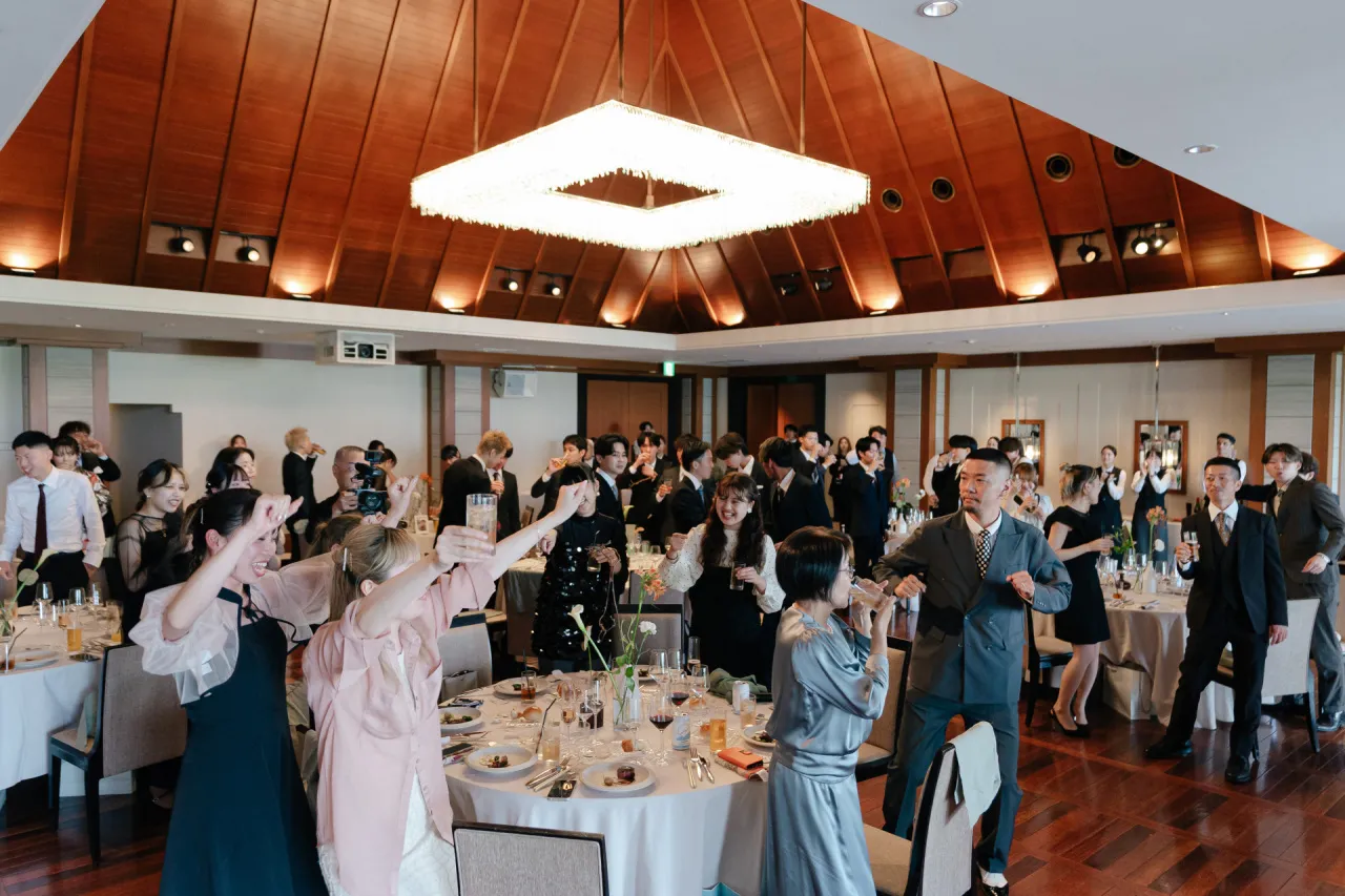 お色直し後は「パーティーみたいに楽しみたい!」というおふたりの想いから全員でワンモアチアーズ!