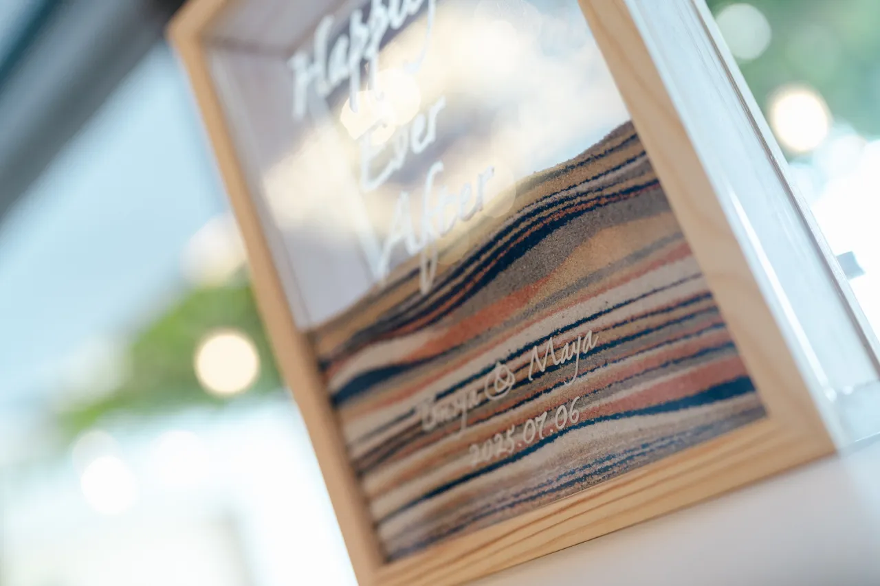 ゲストと一緒に楽しめる演出としてサンドセレモニー・新婦妹が撮影した前撮り写真