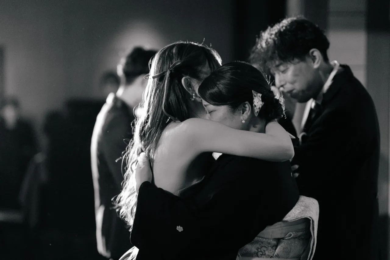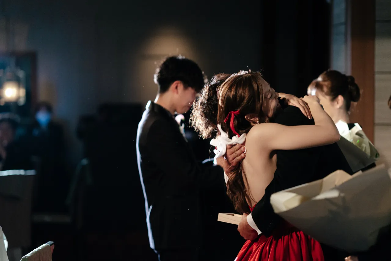 振り返った瞬間に気持ちが溢れ、おふたりが同時に涙をこぼした、