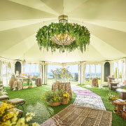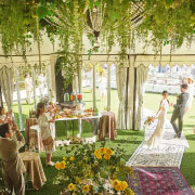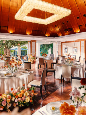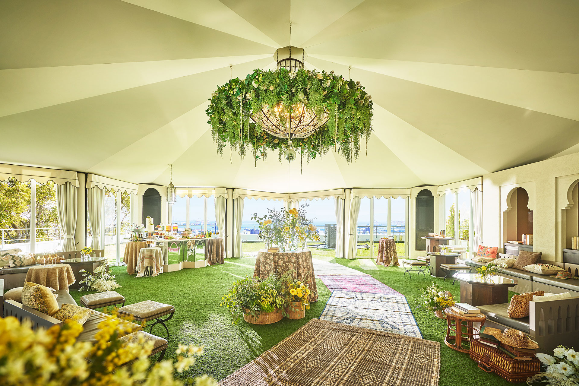 フレンチモロッカンテイストのダイニングでは、ゲストとの距離が近い少人数のアットホームなパーティにぴったり。天井を解放して、バルーンリリースなどの演出を楽しむこともできます。