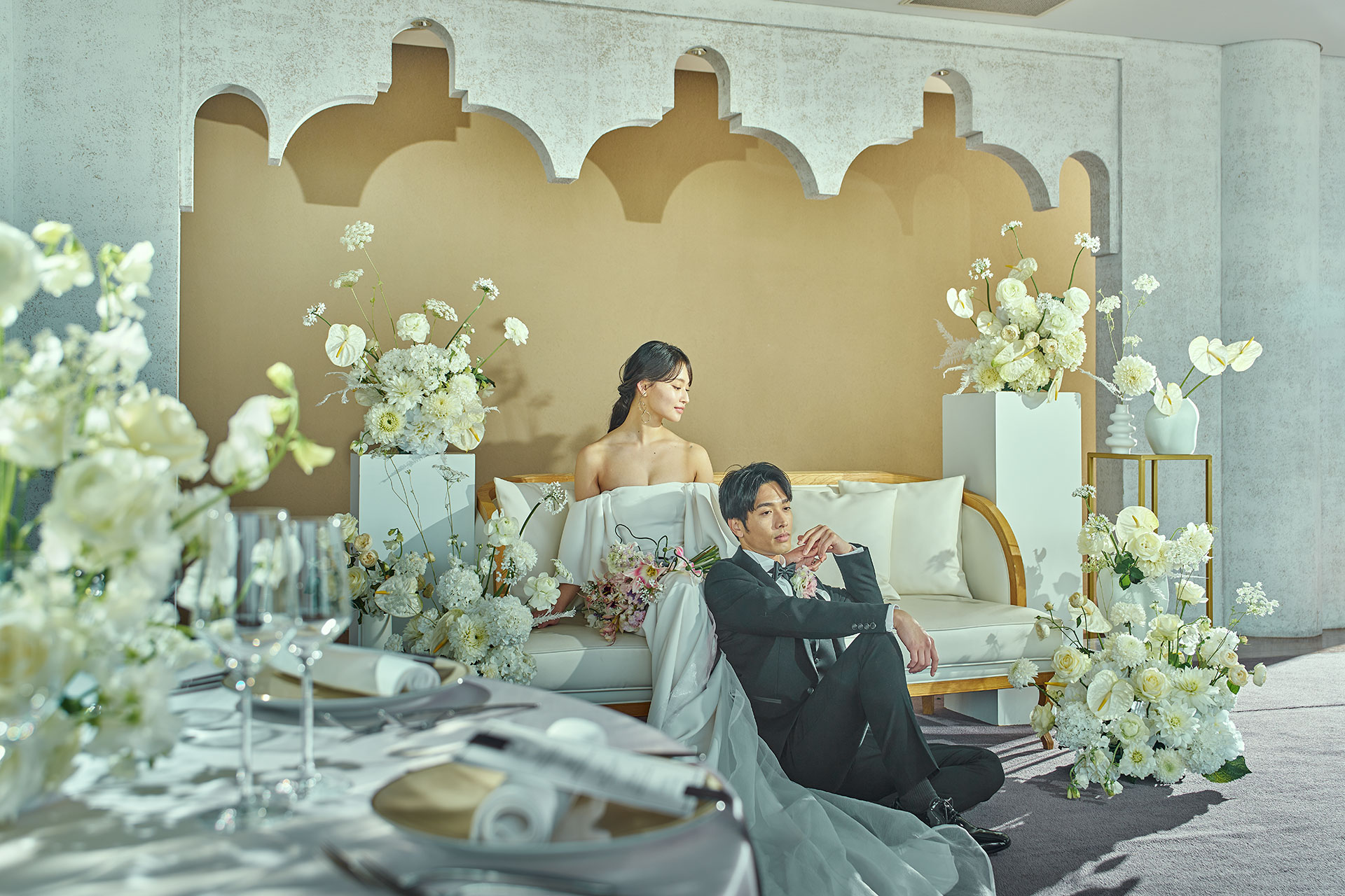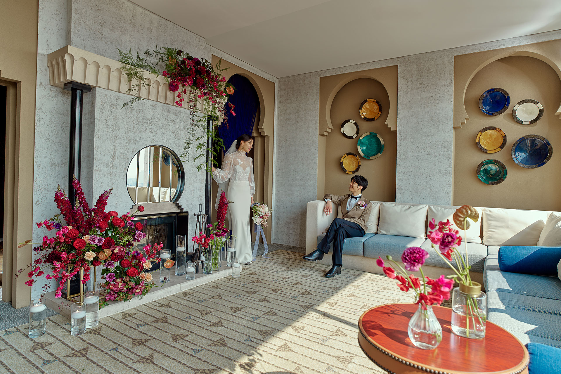 「ミラージュヴィラ」は、SOLAの最上階に位置するフレンチモロッカンテイストのパーティ空間。ゲストと近い距離でアットホームに過ごしたいおふたりにぴったりの会場です。
