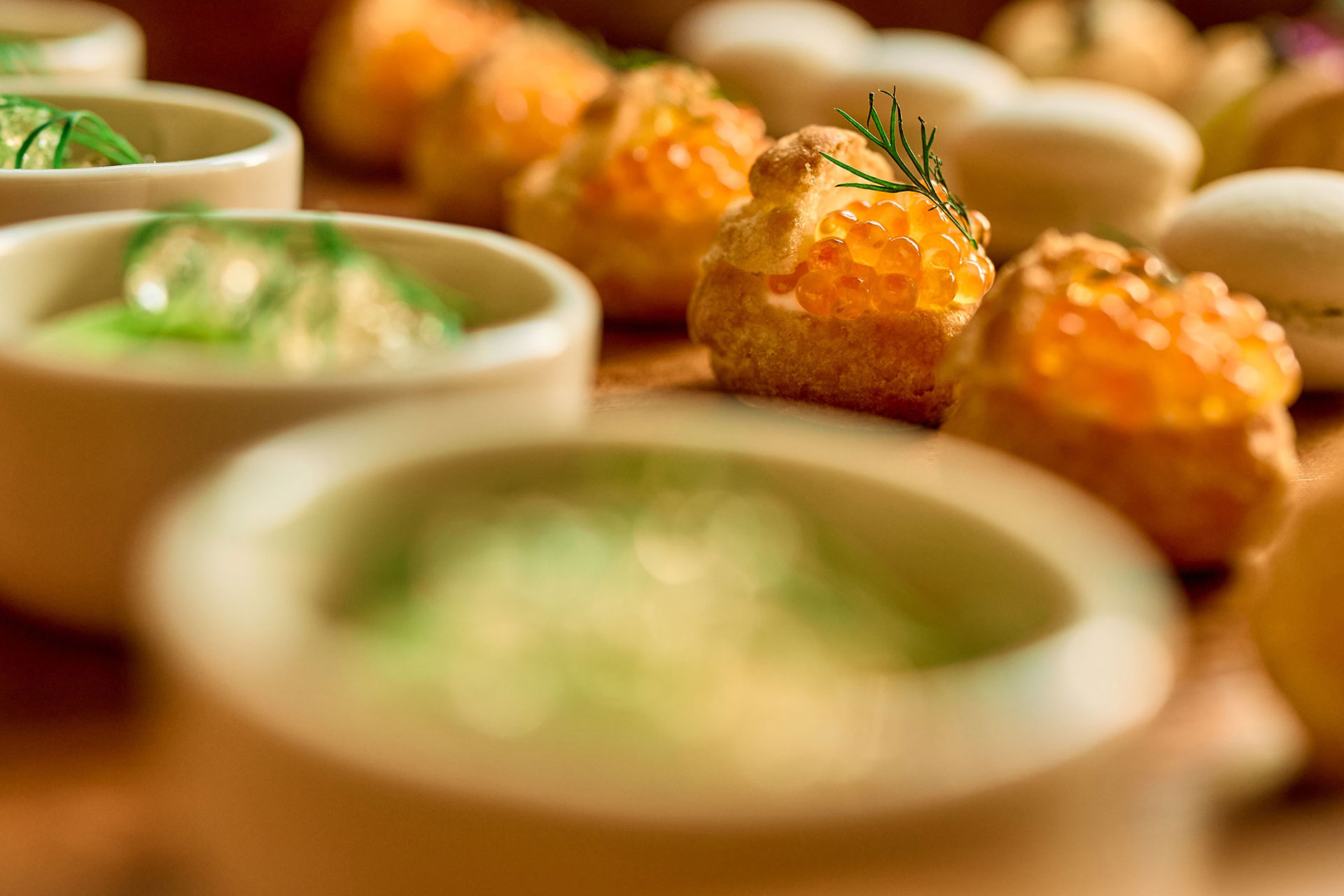 食後のデザートビュッフェは、ダイニングとひと続きになった全天候型のスイーツガーデンで。「ゲストとたくさん話したい」そんな思いを叶えるのがこのガーデン。