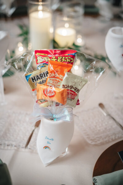 ゲストに名前入りのギフトや、オリジナルメッセージを添えたアイテムをプレゼントすると、心がこもっていて喜ばれます★