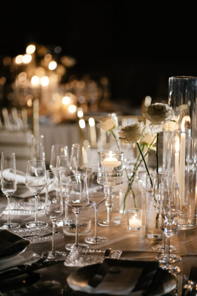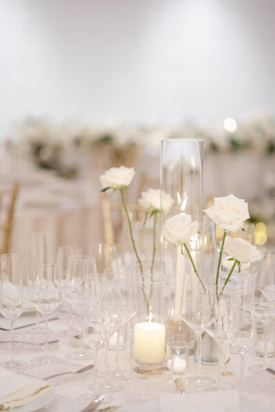 ゴールドの花瓶やキャンドルスタンドなどを使って