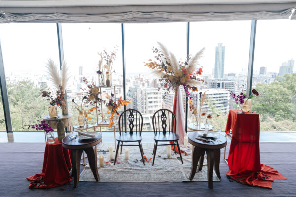 テーマカラーやパーティーの雰囲気をお伺いして、コーディネートもおふたりらしいものを