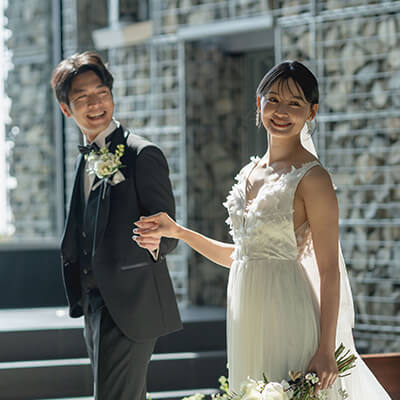 チャペル内に入った瞬間に目を奪われるのは、高天井のスケール感と御影石を積み上げた壁面、そして天空へ向かってのびるバージンロード。非日常のドラマティックなしつらえが、おふたりの旅立ちを祝福します。